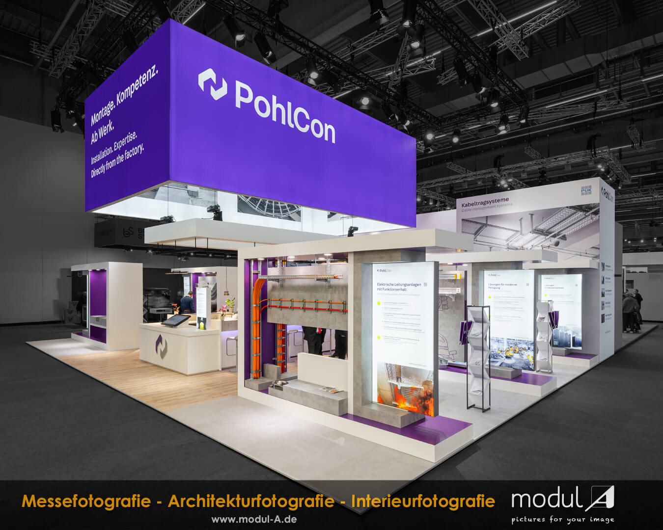 Nach Messeschluss kehrt Ruhe in die Hallen der Messe Frankfurt ein. Diese Phase eignet sich ideal für reduzierte Aufnahmen des Messestands. Ohne Besucher. Ohne visuelle Störungen. Der Fokus liegt auf Raumstruktur, Materialien, Lichtführung und Details.